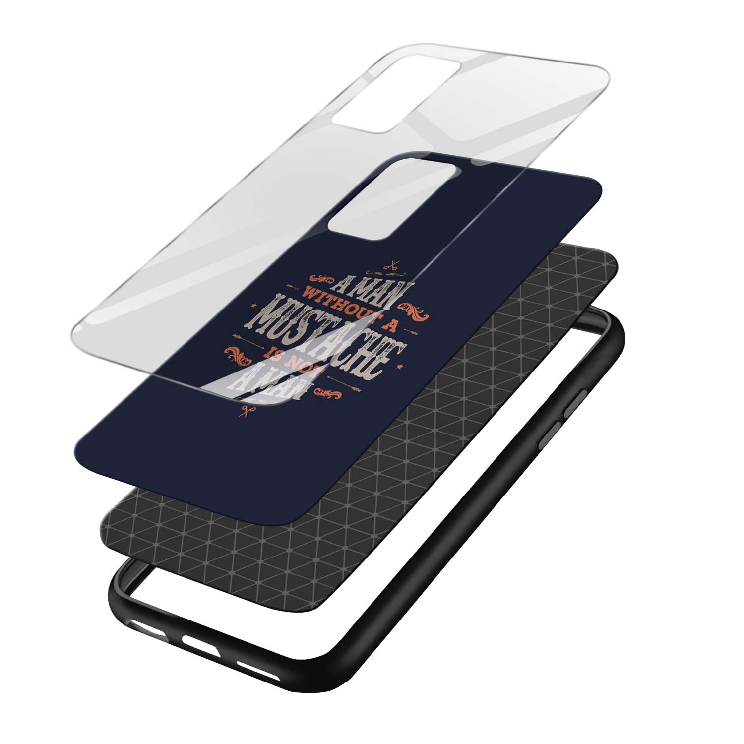 A Man Without A Mustache Is Not A Man Printed Glass Back Phone Case
