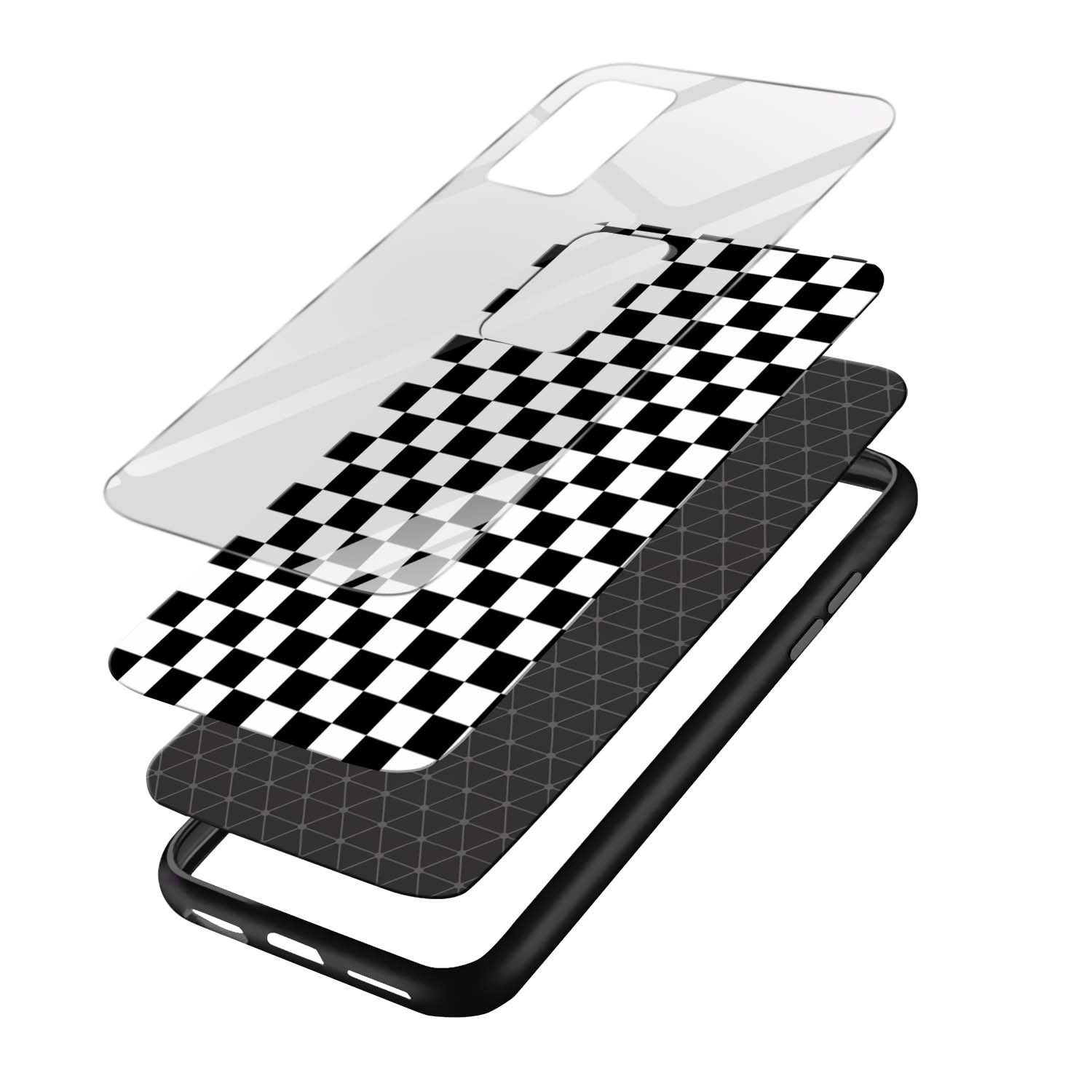 Black and White Checks Glass Back Phone Case
