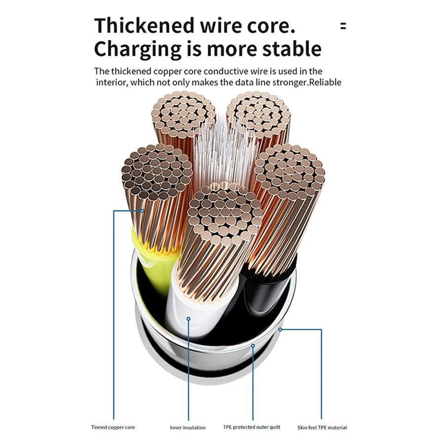 Copper wires: Charging 11*0.16*2, data transfer 7*0.12*2