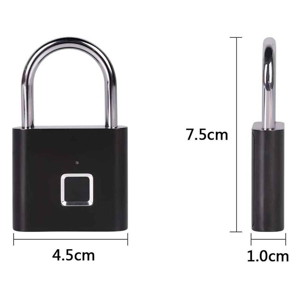【Specification & Uses】- Size:100.8*62*25mm,Weight:364 Gram,Storage: 20 Different Fingerprints (2 Administrator+18 Users). Unlock Way:Fingerprint and Bluetooth App,Charging:Mirco usb charge,Alarm:Low power alarm,Material:Zinc alloy body, Speed: 0.5 second unlock,Standby Time: 6 Month to One year standby time,Battery: Built-in 150mAH Lithium battery,Single Charge Capacity: more 1500 times unlock charge full,Color:Black/Silver.