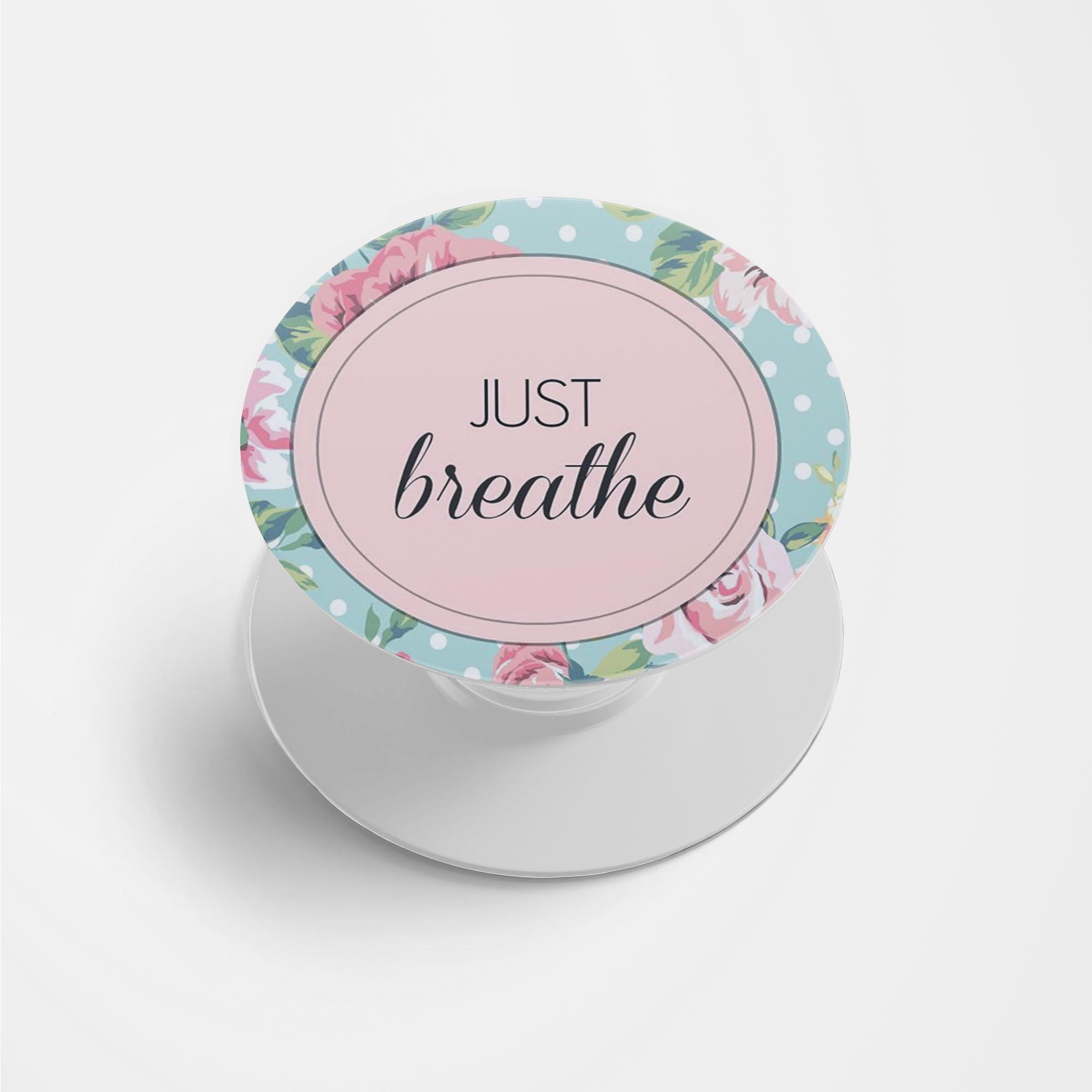 Typography – Just Breathe Printed Phone Grip Holder & Stand