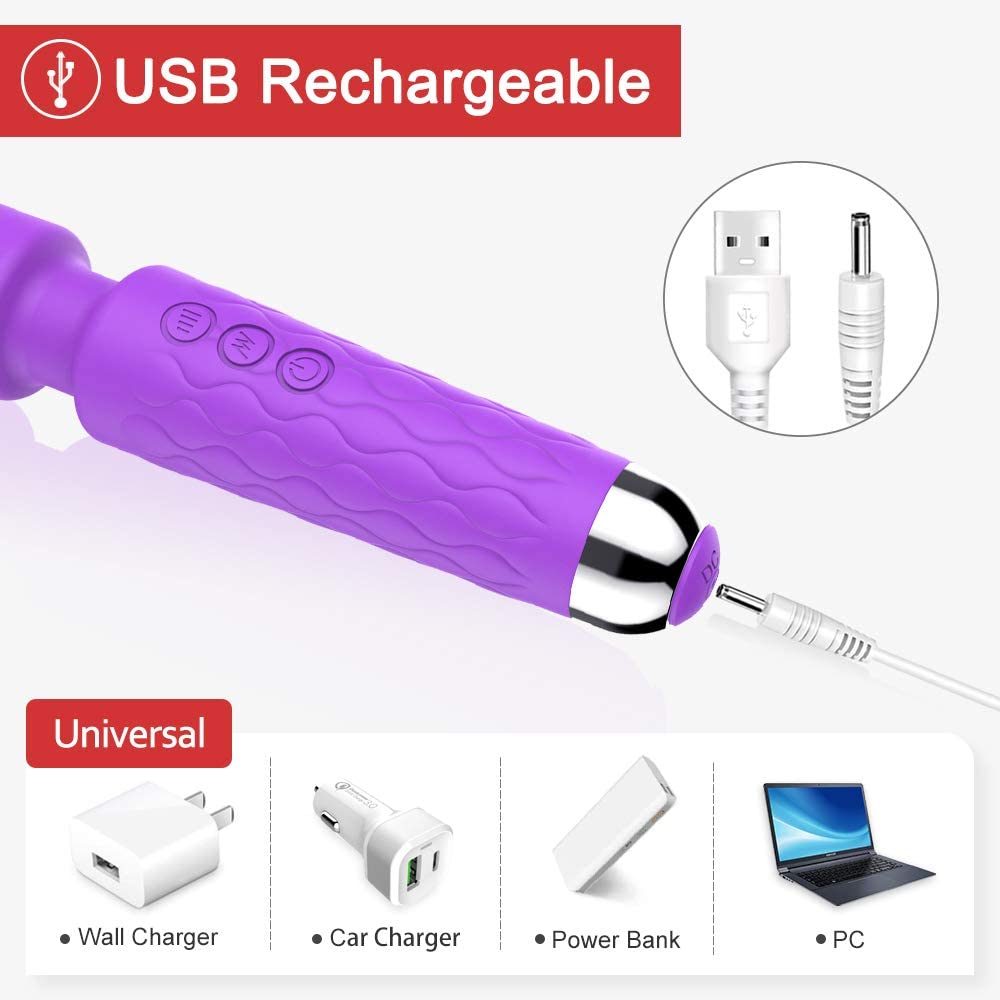 ✔️【CORDLESS & USB RECHARGEABLE】 Get rid of the wire but get USB rechargeable, this electric cordless wand massager equips 1800 ma battery which enables it last long, fast charging , and the USB cable allows you to charge through a PC or a Plug. The travel pouch are also included make it more convenient for travel. Well relieve your tired neck, shoulders, back, legs, knee, and feet.